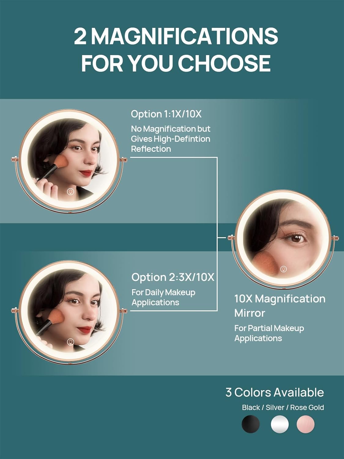 - 【Multiple Choices】This makeup mirror is available in 3 colors: BLACK, SILVER, and ROSE GOLD. Each one is perfect for Thanksgiving, Christmas, and other holiday gifts。